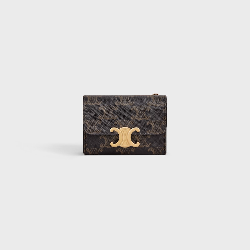 4 x 3 x 1英寸(10 x 7.5 x 3厘米)Triomphe Canvas标志印花人造革衬里 : 牛皮革/织物金色金属件TRIOMPHE 金属质感按扣4个信用卡槽1个纸币袋1个可拆卸拉链卡包,正面设有扁平口袋编号:10I652DS3.04LU