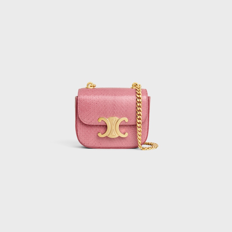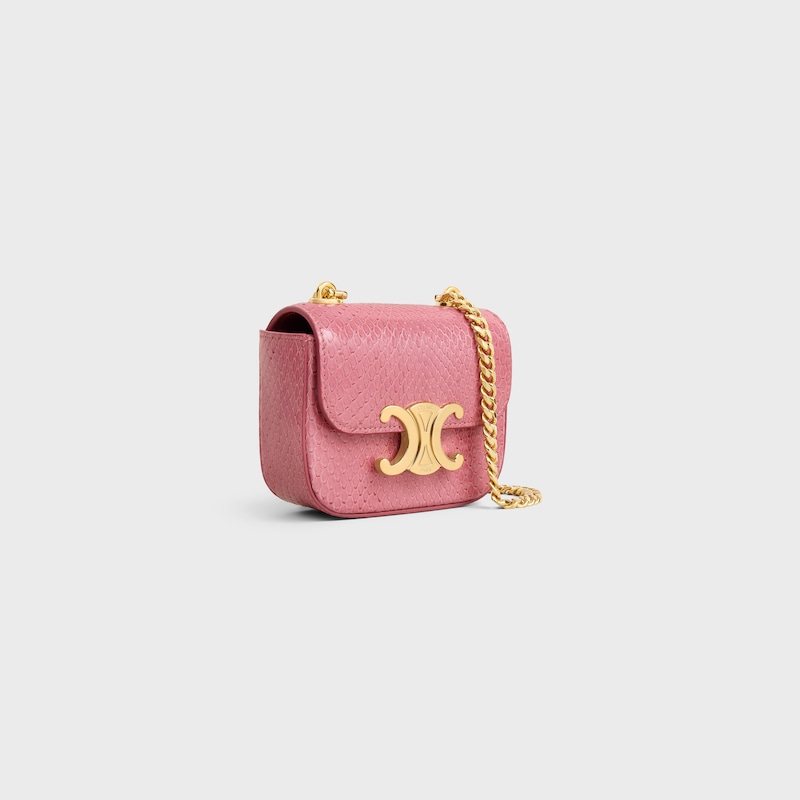 迷你手袋,本款型无法装下智能手机机型4 x 3 x 2英寸(11 x 8 x 4厘米)蛇皮革羊皮革衬里金色饰面斜挎和肩背TRIOMPHE金属按扣开合1个内侧扁平口袋链带,长度22英寸(55厘米)编号:10L844GF9.25PI
