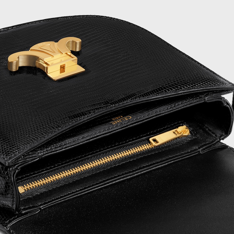 7 x 6 x 2英寸(19 x 15 x 6厘米)蜥蜴皮革(圆鼻巨蜥)羊皮革衬里斜挎和肩背TRIOMPHE金属锁扣3个内侧隔层1个内侧拉链口袋1个内侧扁平口袋可调节肩带,最小长度15英寸(38厘米),最大长度20英寸(52厘米)编号:110414BF5.38NO