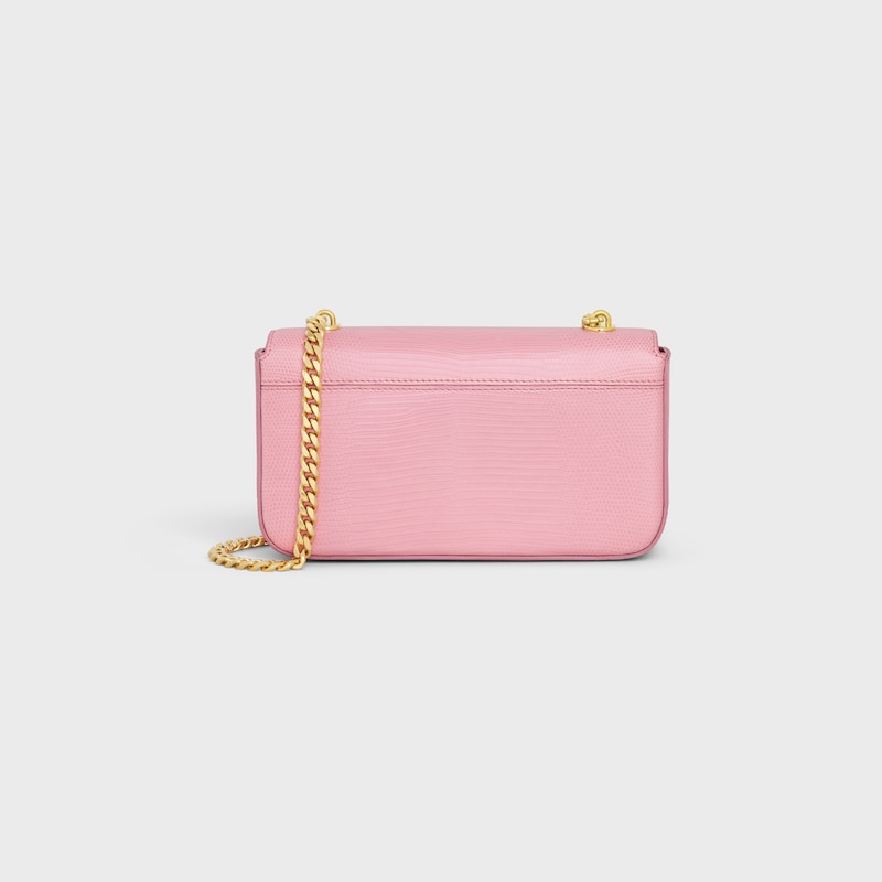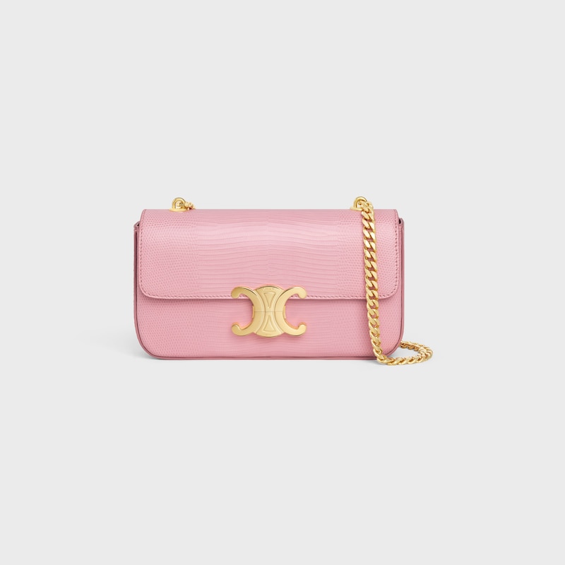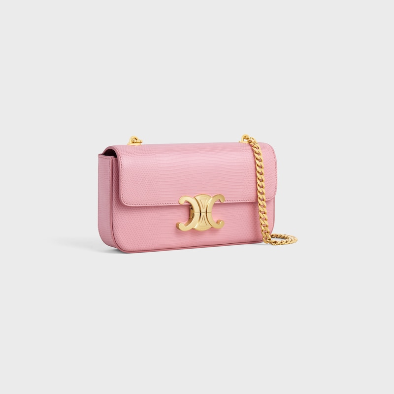 8 x 5 x 2英寸(20.5 x 11.5 x 4厘米)蜥蜴皮革(圆鼻巨蜥)羊皮革衬里金色饰面肩背TRIOMPHE金属锁扣1个主隔层1个内侧扁平口袋链条长12英寸(30厘米)编号:115204BFJ.24OS