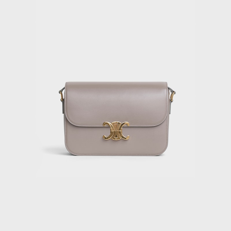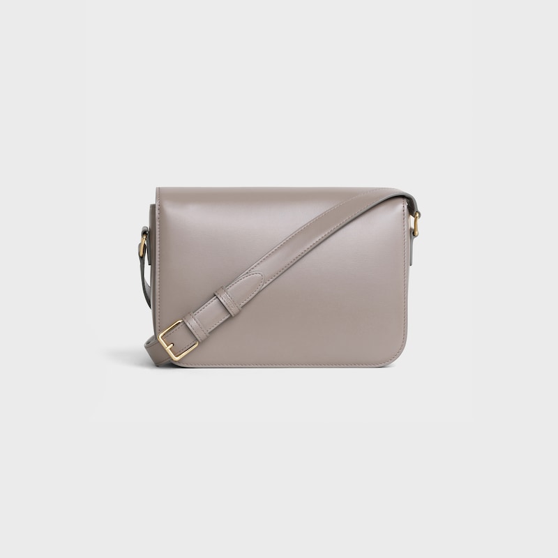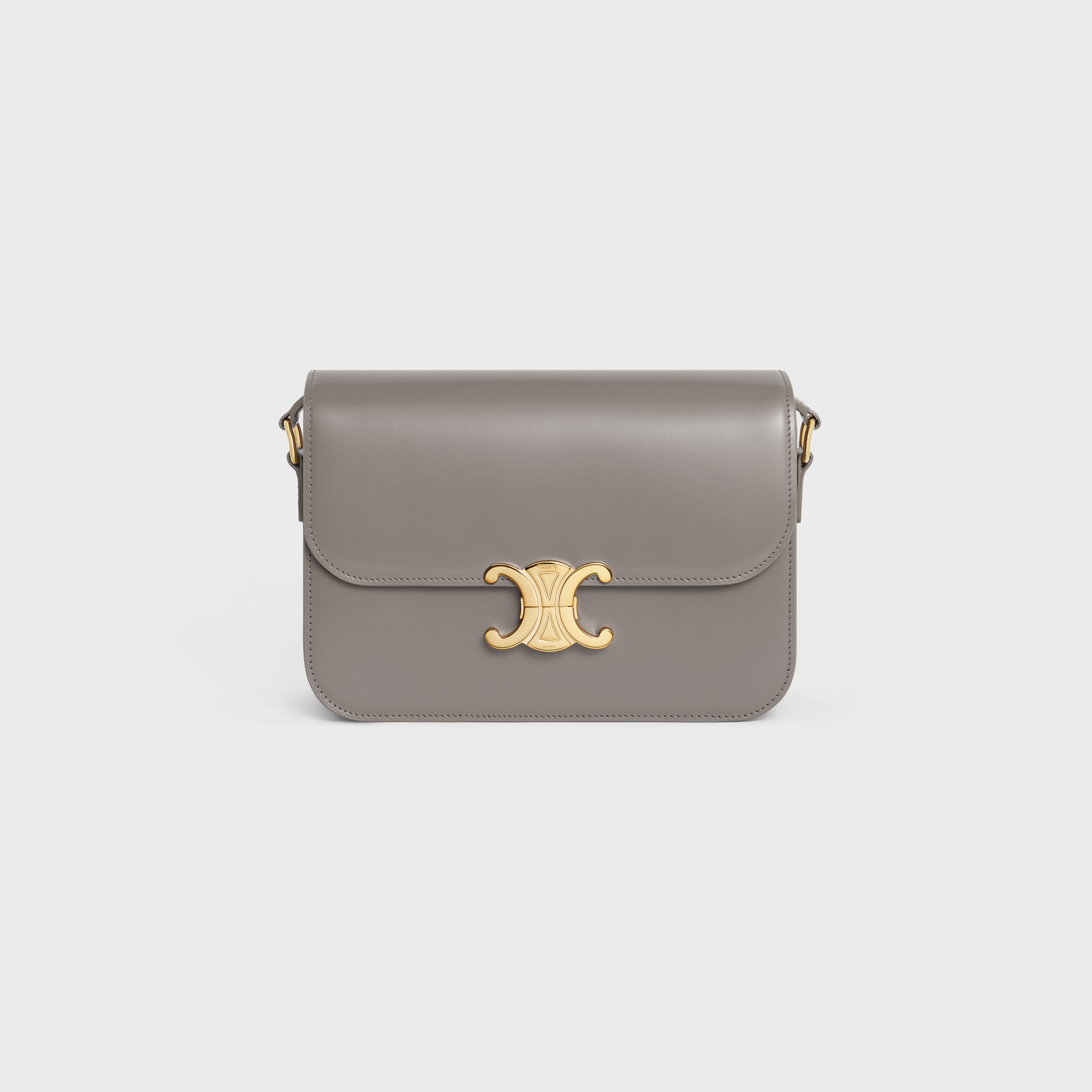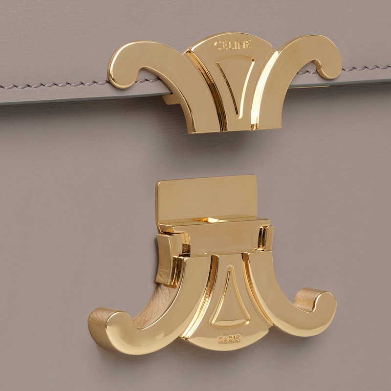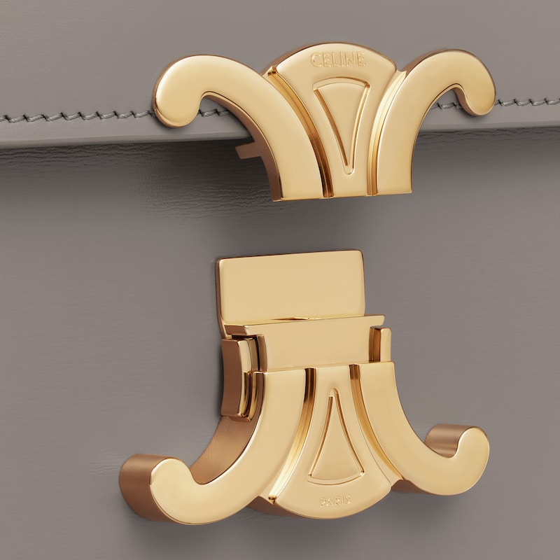 9 x 6 x 3英寸(22.5 x 16.5 x 7厘米)牛皮革羊皮革衬里金色金属件斜挎和肩背TRIOMPHE金属锁扣三个主内格可调节肩带,最小长度17英寸(44厘米),最大长度20英寸(51厘米)编号:187363BF4.10BL