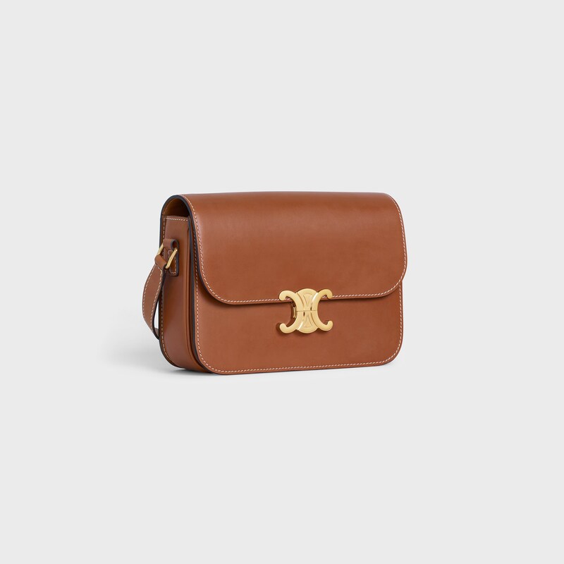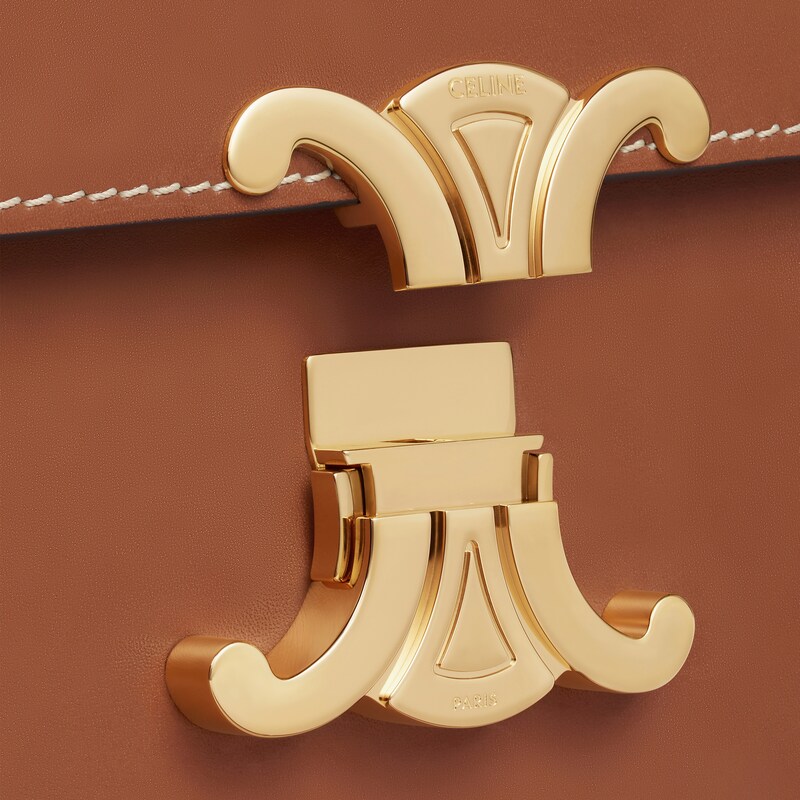 9 x 6 x 3英寸(22 x 16.5 x 7厘米)牛皮革羊皮革衬里金色金属件斜挎和肩背TRIOMPHE 金属质感锁扣三个主内格可调节皮革肩带长19英寸(47厘米)编号:187363BFN.04LU