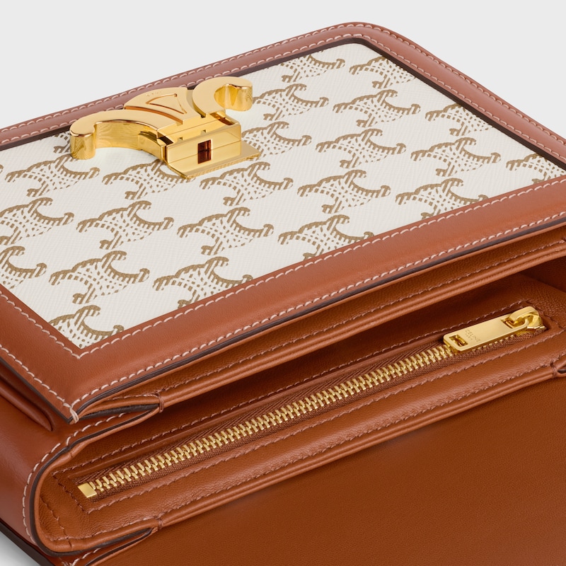 7 x 6 x 2英寸(18.5 x 14 x 6厘米)人造革/牛皮革羊皮革衬里斜挎和肩背Triomphe 金属质感锁扣内侧拉链口袋和扁平口袋可调节皮革肩带,长17英寸(42厘米)编号:188882BZ4.01BC