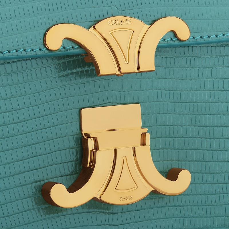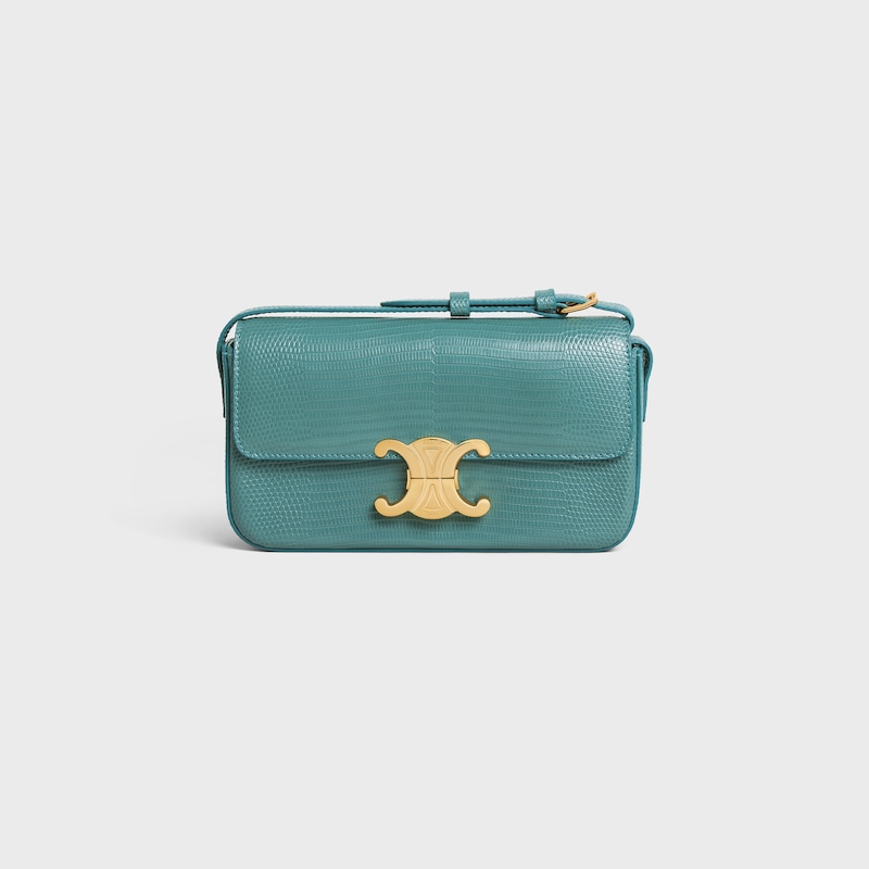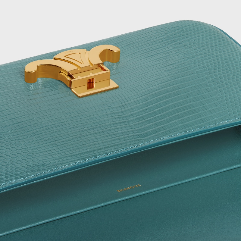 8 x 5 x 2英寸(20.5 x 11.5 x 4厘米)蜥蜴皮革(圆鼻巨蜥)羊皮革衬里肩背TRIOMPHE金属锁扣1个内侧扁平口袋可调节肩带,最小长度8英寸(21厘米),最大长度10英寸(25厘米)编号:194144BFJ.30GS