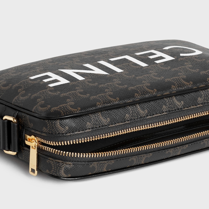 9 x 6 x 2英寸(23 x 15 x 5厘米)Triomphe Canvas标志印花人造革织物面料衬里斜挎和肩背拉链锁闭内侧扁平口袋可调节皮革肩带长22英寸(55厘米)编号:194502CIM.38OG