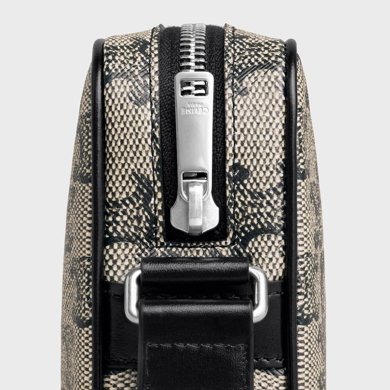 9 x 6 x 2英寸(23 x 14.5 x 4.5厘米)标志印花人造革,牛皮革包边织物衬里银色饰面斜挎和肩背拉链锁闭内侧扁平口袋可调节皮革肩带长22英寸(55厘米)编号:194502GED.02SI