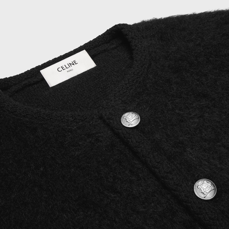 66%马海毛,30%锦纶,4%羊毛经典版型圆领2个西装袋编织缎带饰边腰部和袖口饰罗纹饰边6枚CELINE徽章纽扣意大利制造编号:2AD8P282W.38NO