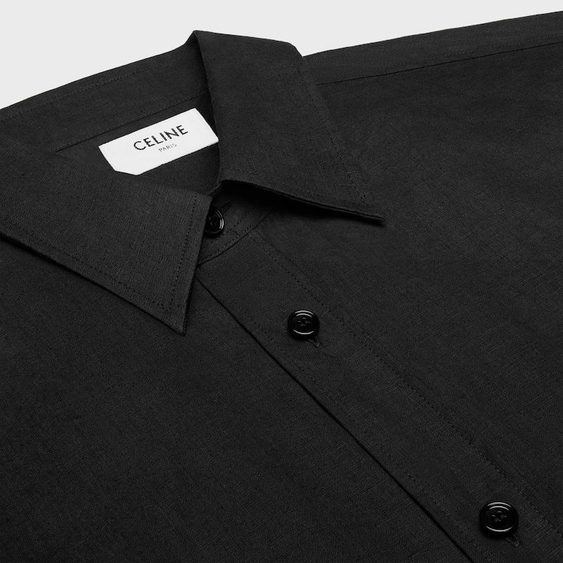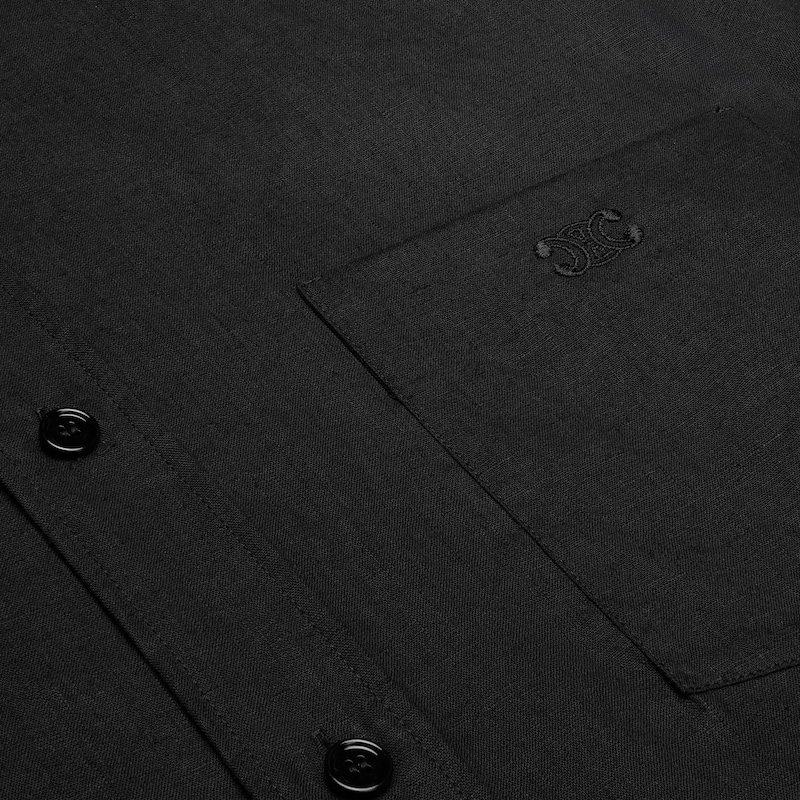 100%亚麻同色系TRIOMPHE刺绣宽松版型大褂领纽扣袖口和斜裁细节胸前1个贴袋7枚珍珠母贝纽扣袖口饰1枚珍珠母贝纽扣圆弧下摆意大利制造编号:2C982170U.38NO