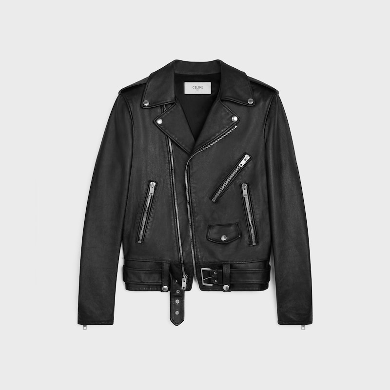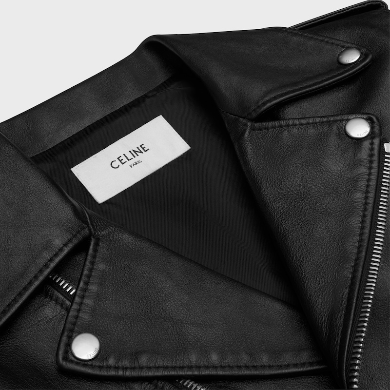 牛皮革衬里:70%铜氨纤维,30%棉经典版型肩袢3个拉链口袋1个翻盖口袋镌刻CELINE字样的按扣拉链开合袖口和背面设有拉链腰带意大利制造编号:2E158599E.38NO