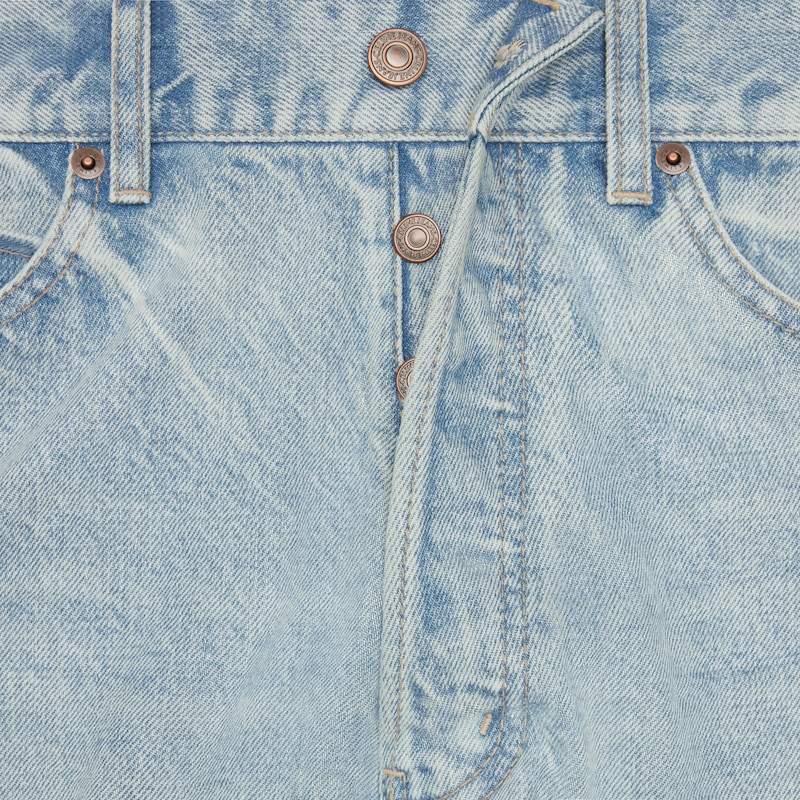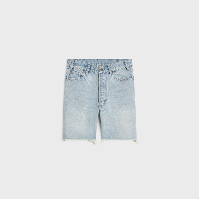 100%棉 口袋衬里:100%棉 HORIZON水洗色 经典版型 低腰 5个口袋 正面口袋设有饰钉 腰部背面设有贴饰 毛边 拉链和纽扣镌刻CELINE JEANS字样 日本制造编号:2N34B630V.08HZ