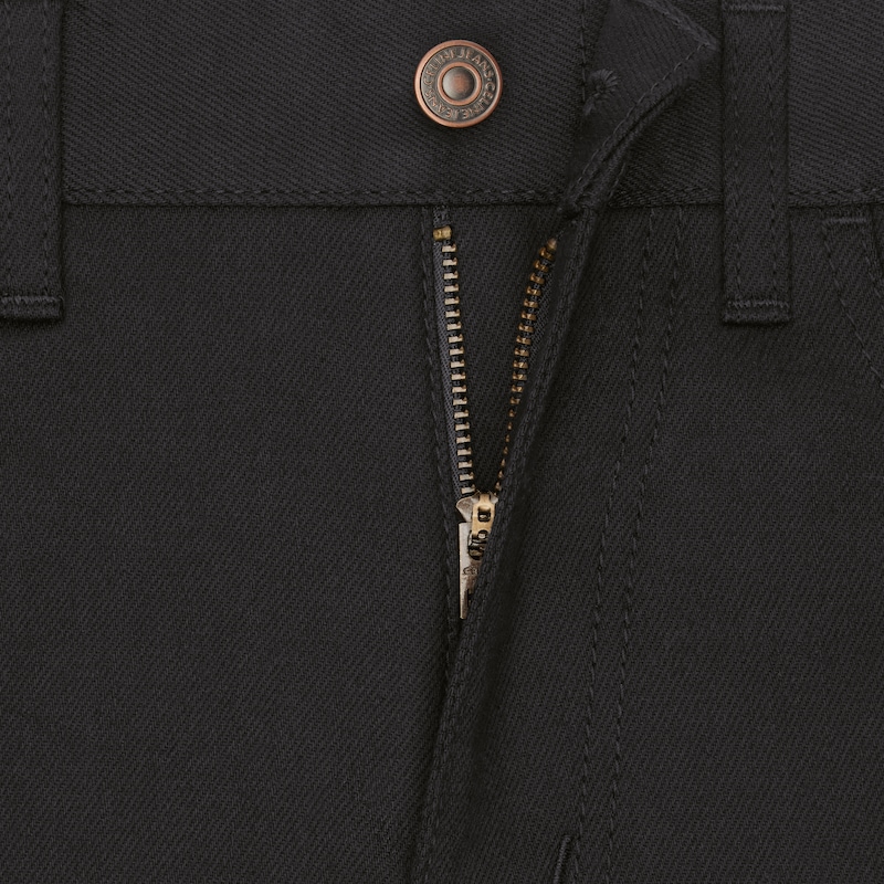 98%棉,2%氨纶复古PURE BLACK水洗色修身版型低腰5个口袋正面口袋设有饰钉腰部背面设有贴饰纽扣和拉链镌刻CELINE JEANS字样日本制造编号:2N354082T.38TK