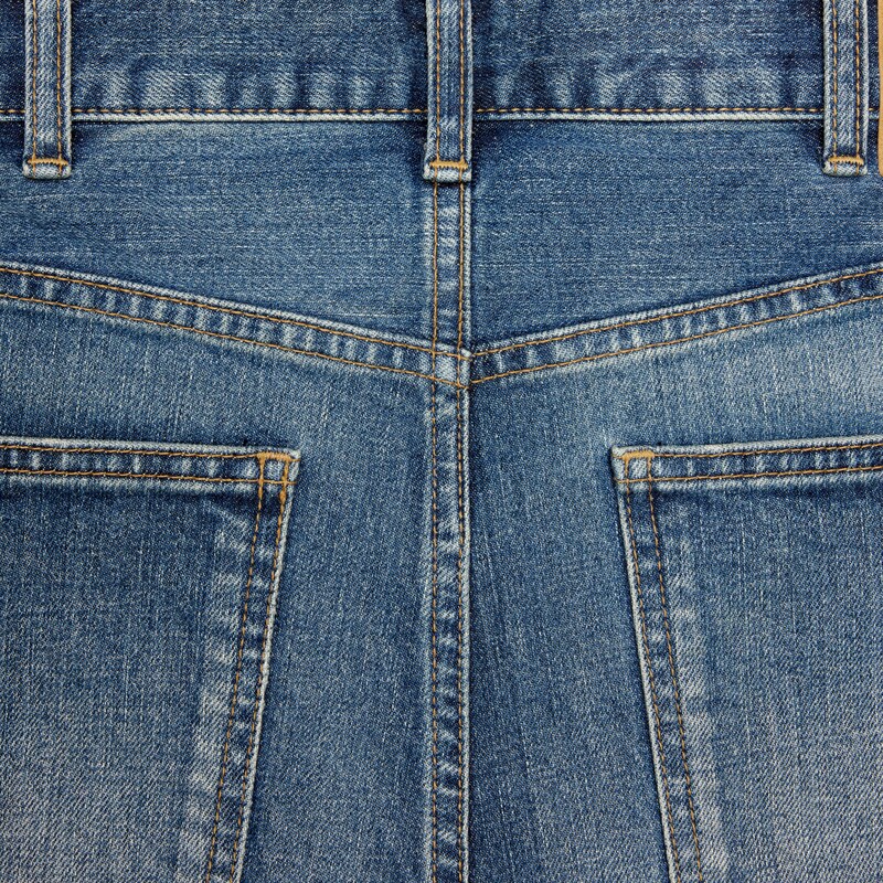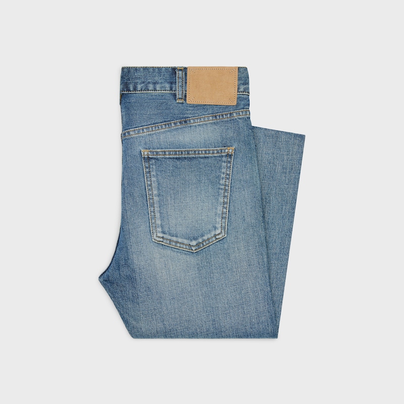 98%棉,2%氨纶复古UNION水洗色修身版型低腰5个口袋正面口袋设有饰钉腰部背面设有贴饰拉链和纽扣镌刻CELINE JEANS字样日本制造编号:2N354114T.08TU