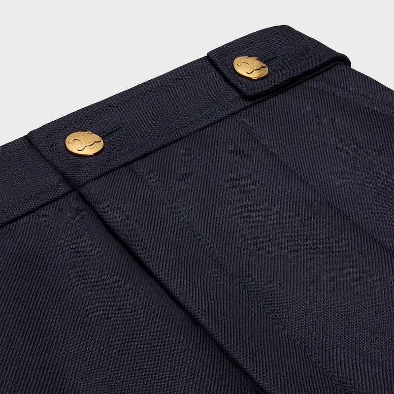 100%羊毛衬里:52%粘纤,48%铜氨纤维辅衬:100%棉经典版型高腰喇叭裤腿2个侧袋背面2个贴袋腰部设有2个可调节袢带TRIOMPHE拉链和纽扣可调节扣带饰1枚TRIOMPHE纽扣意大利制造编号:2P79A148P.07MR
