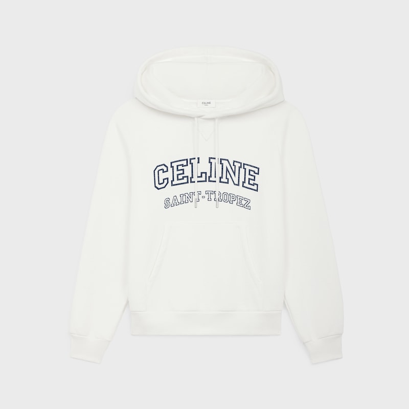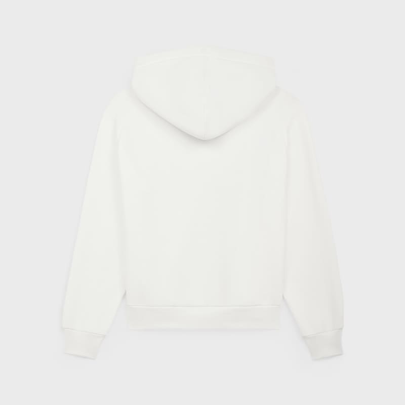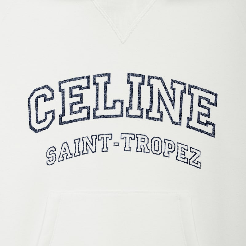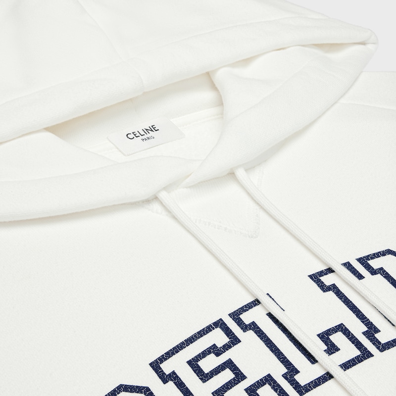 连帽衣领,设有可调节抽绳,配以镌刻CELINE PARIS字样的金属箍