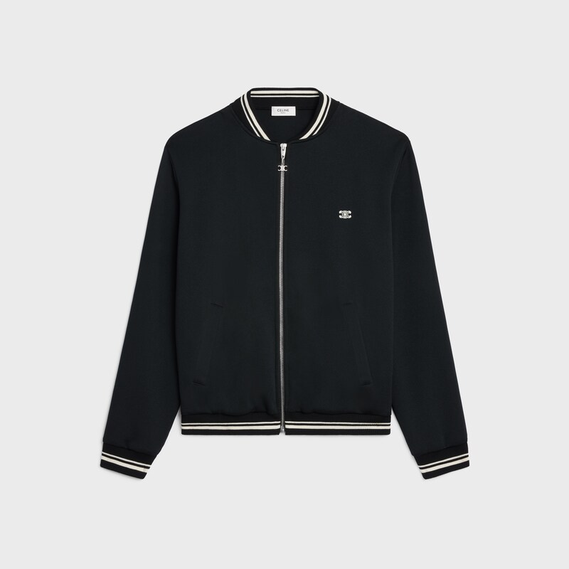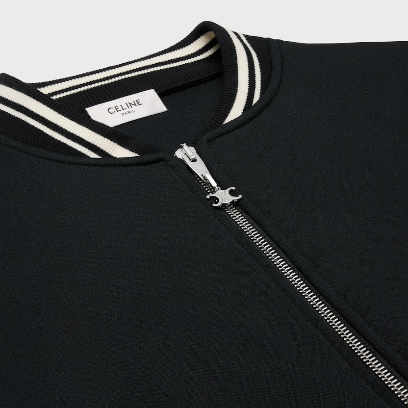 100%聚酯纤维衬里:52%粘纤,48%铜氨纤维TRIOMPHE刺绣经典版型双色TEDDY领2个斜插西装袋双色罗纹饰边拉链开合,饰TRIOMPHE流苏意大利制造编号:2Y04H121O.BZZ8