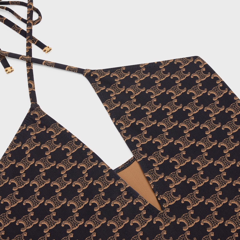 62%锦纶,38%氨纶衬里:76%锦纶,24%氨纶经典版型交叉V领背面系带开合,配TRIOMPHE绳箍法国制造编号:2Z306939T.17BR