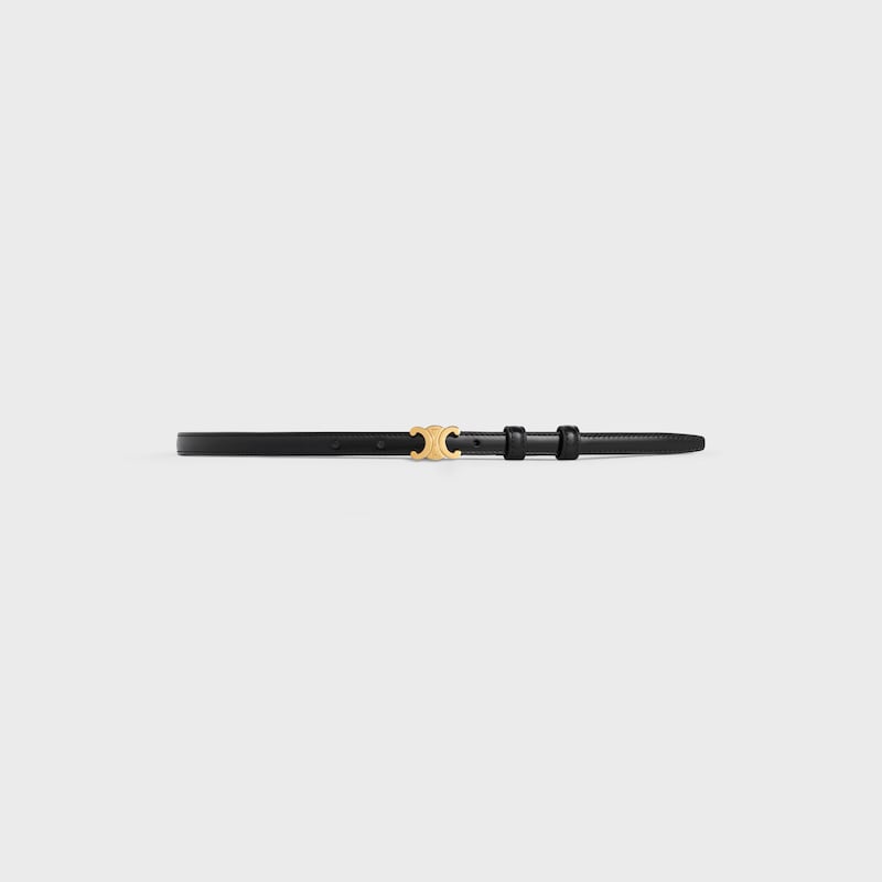 纤细版型,带宽细(1.3厘米),可搭配经典西装外套、裙装,增添高雅气质同款有中号腰带可选(带宽2.5厘米)面层:牛皮革,底层:牛剖层革宽度0.5英寸(1.3厘米)不可拆卸TRIOMPHE 搭扣编号:45BA33A01.38NO