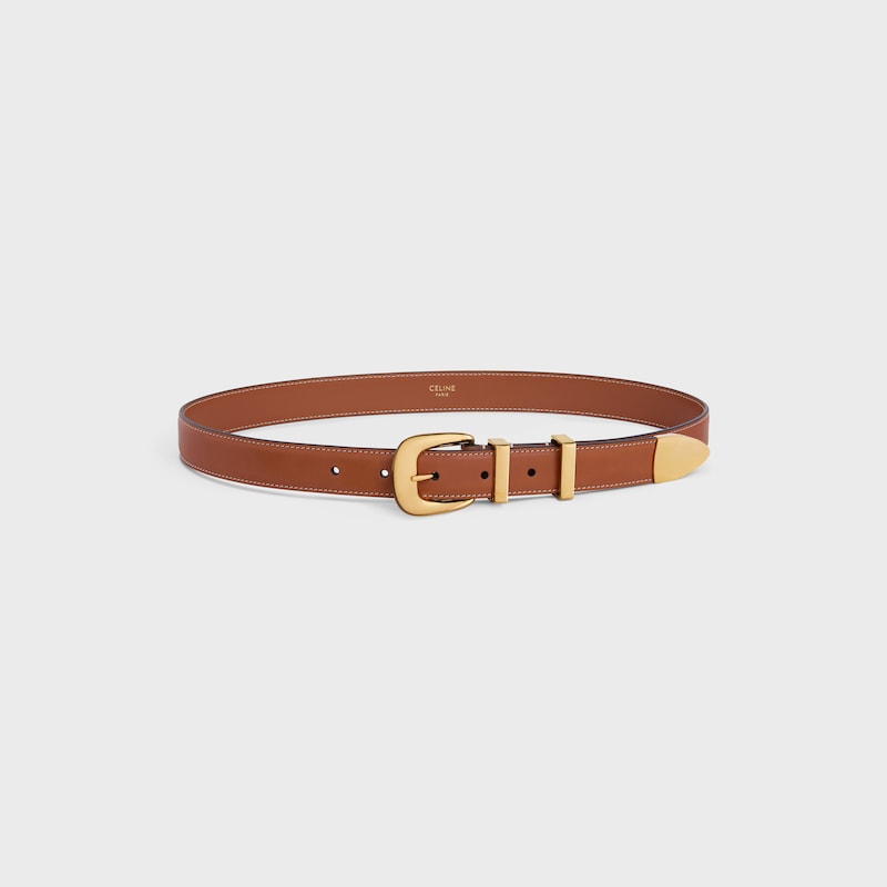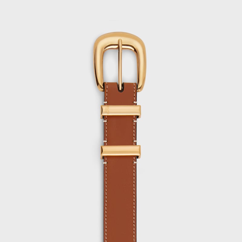 面层:牛皮革,底层:牛剖层革中腰金色饰面金属件圆形搭扣圆形带扣2个金属环和1个金属尖头装饰第一个圆环底部镌刻CELINE PARIS标识。编号:45BAG3A78.04LU