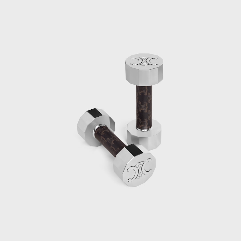 3 x 7 x 3英寸(6.5 x 17 x 6.5厘米)2公斤金属哑铃覆以标志印花镌刻TRIOMPHE字样银色饰面编号:4M4336WOX.04BT