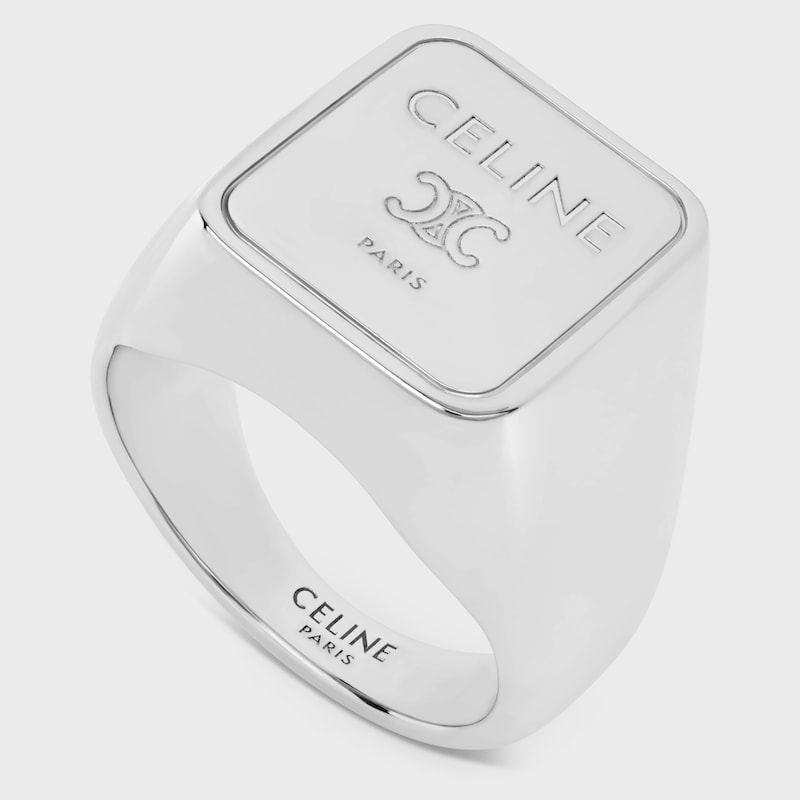 TRIOMPHE SQUARE铑银色饰面印记戒指