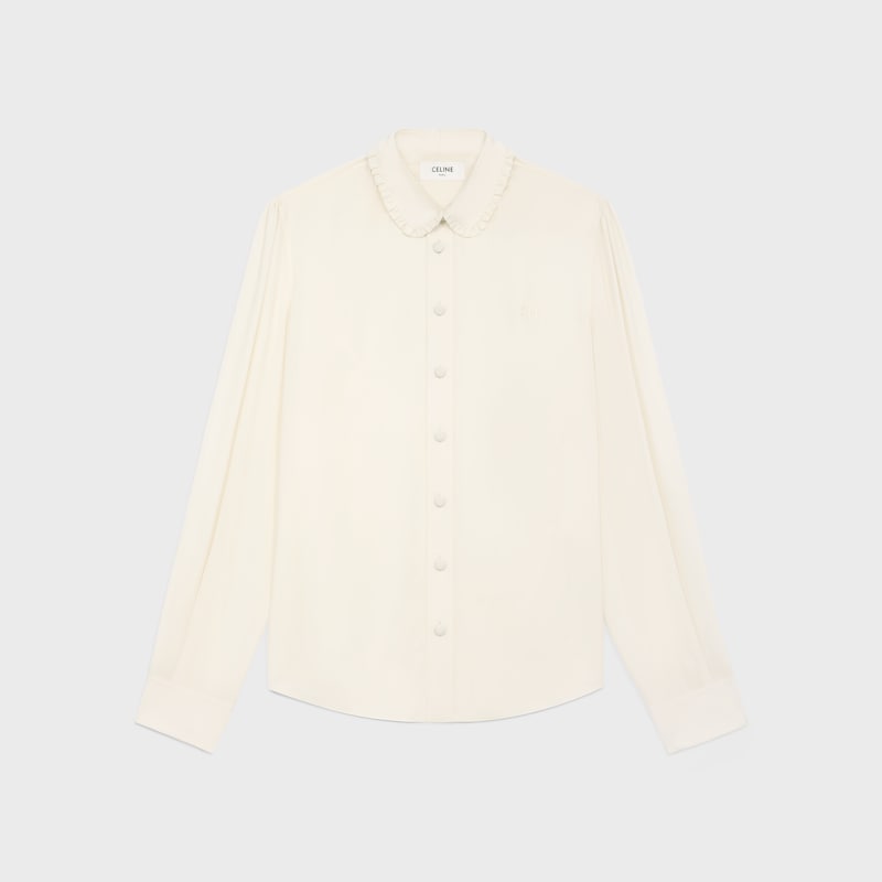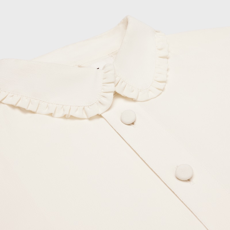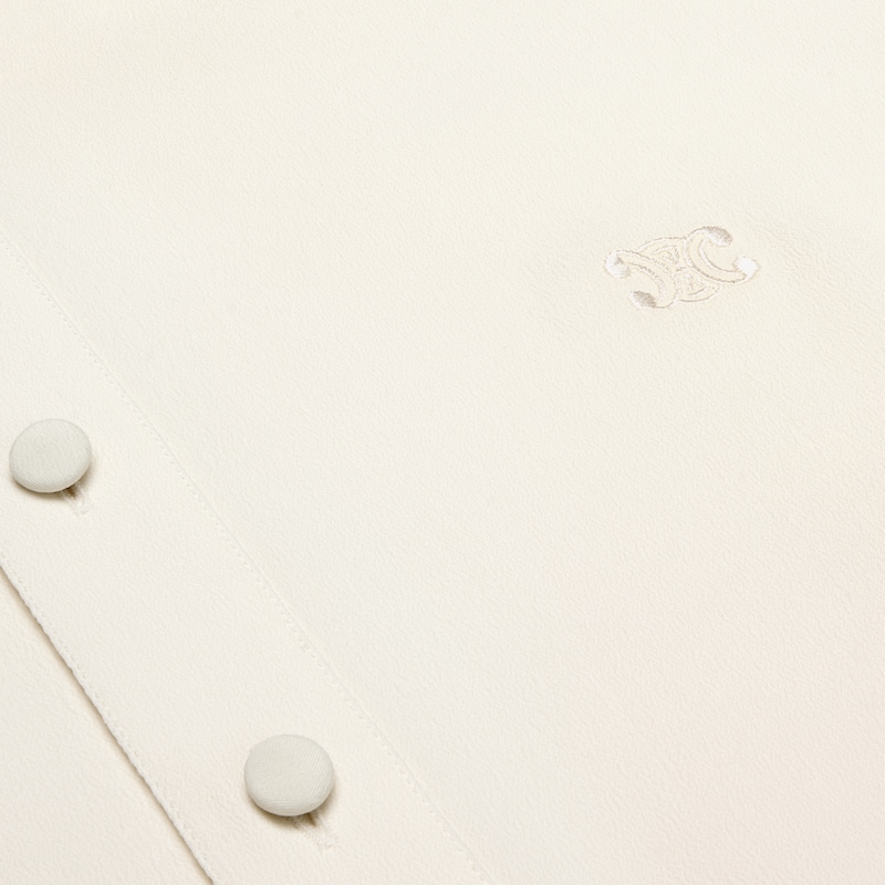 69%醋酸纤维,31%桑蚕丝TRIOMPHE刺绣经典版型褶边大褂领纽扣袖口8枚包扣袖口饰有1枚包扣圆弧下摆葡萄牙制造编号:RC02D008D.01AV
