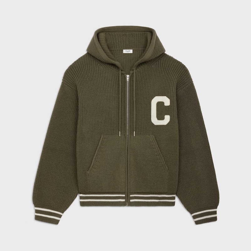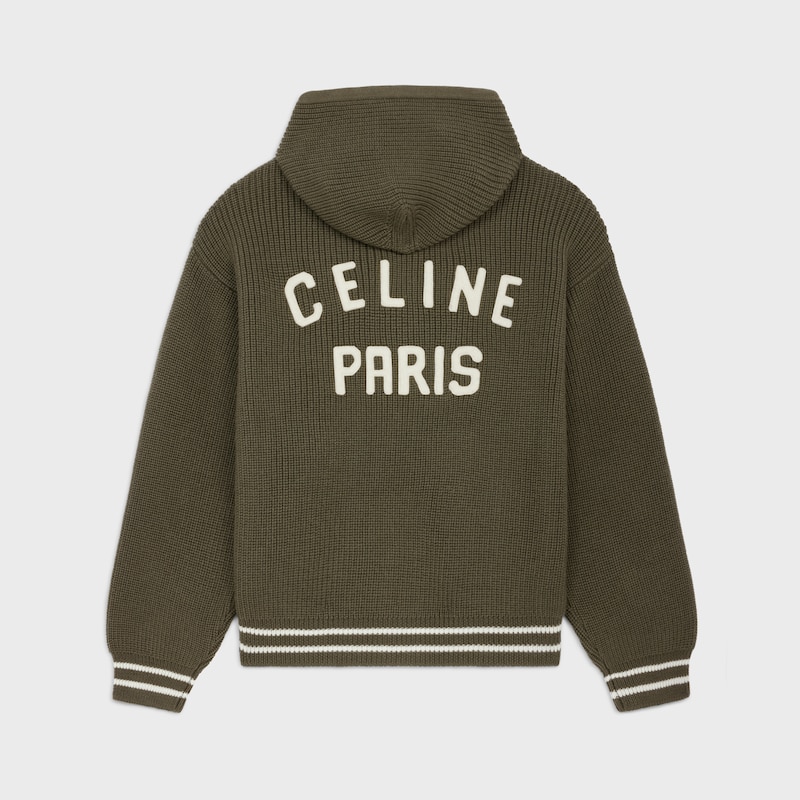CELINE PARIS学院风贴饰羊毛宽松连帽套头衫