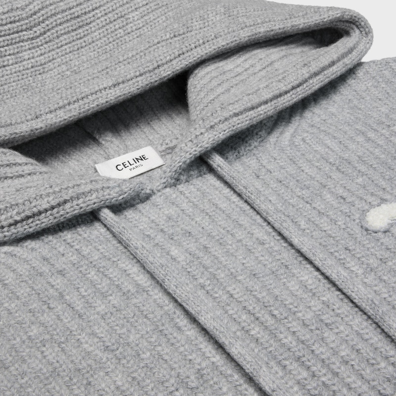 兜帽,设有可调节抽绳,金属箍镌刻CELINE PARIS字样