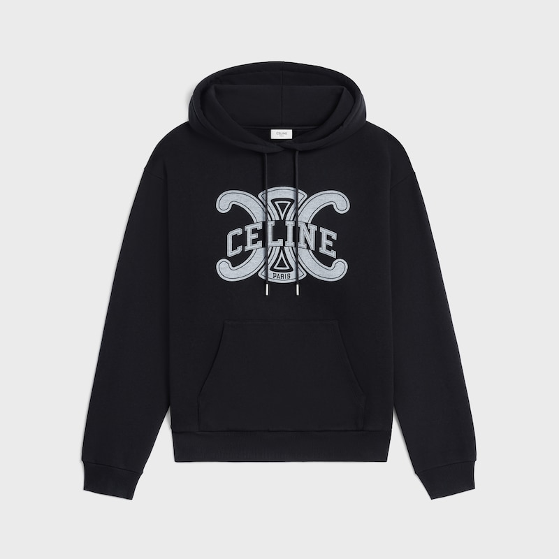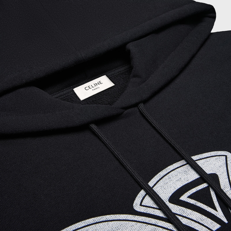 兜帽,设有可调节抽绳,金属箍镌刻CELINE PARIS字样