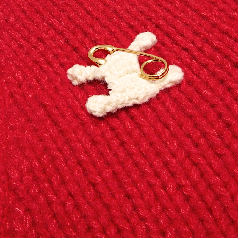 可拆卸钩针编织TRIOMPHE标志,配有镌刻CELINE PARIS字样的安全别针